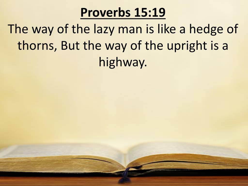 Proverbs 15:19 The way of the lazy man is like a hedge of thorns, But the way of the upright is a highway.
