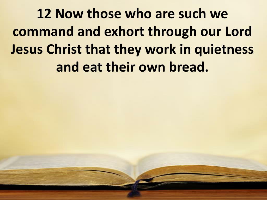 12 Now those who are such we command and exhort through our Lord Jesus Christ that they work in quietness and eat their own bread.
