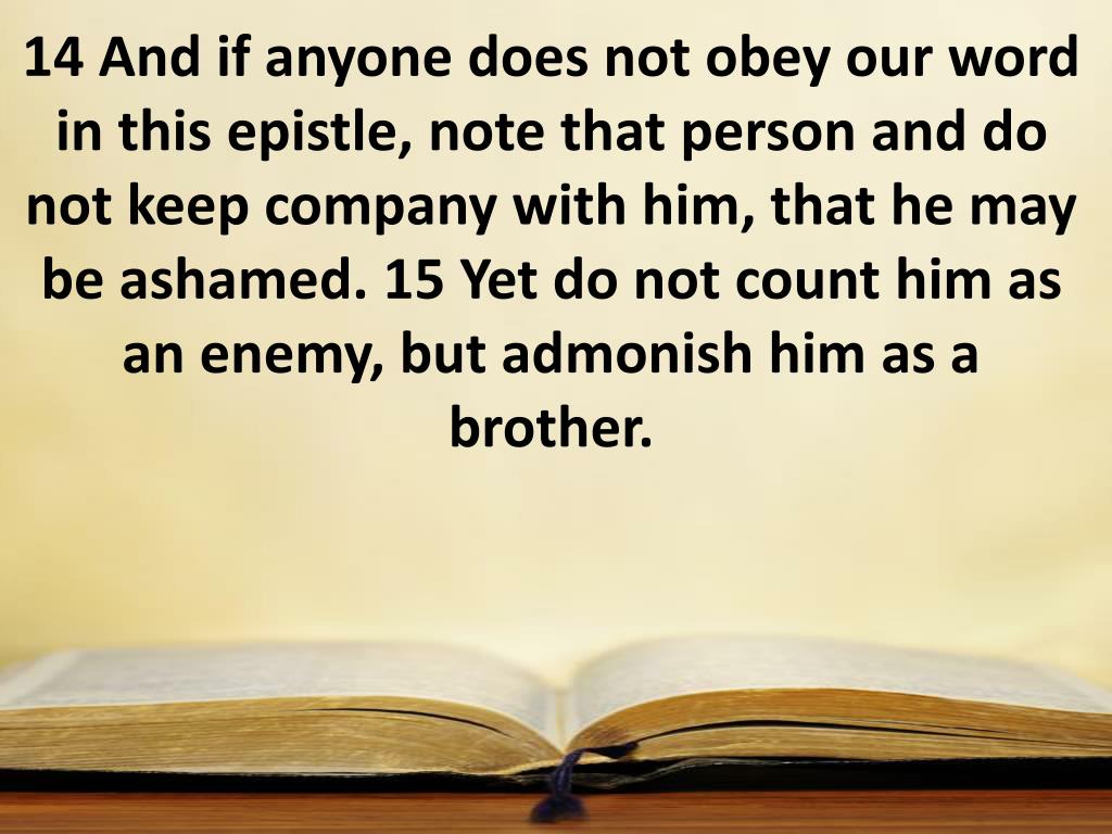 14 And if anyone does not obey our word in this epistle, note that person and do not keep company with him, that he may be ashamed. 15 Yet do not count him as an enemy, but admonish him as a brother.