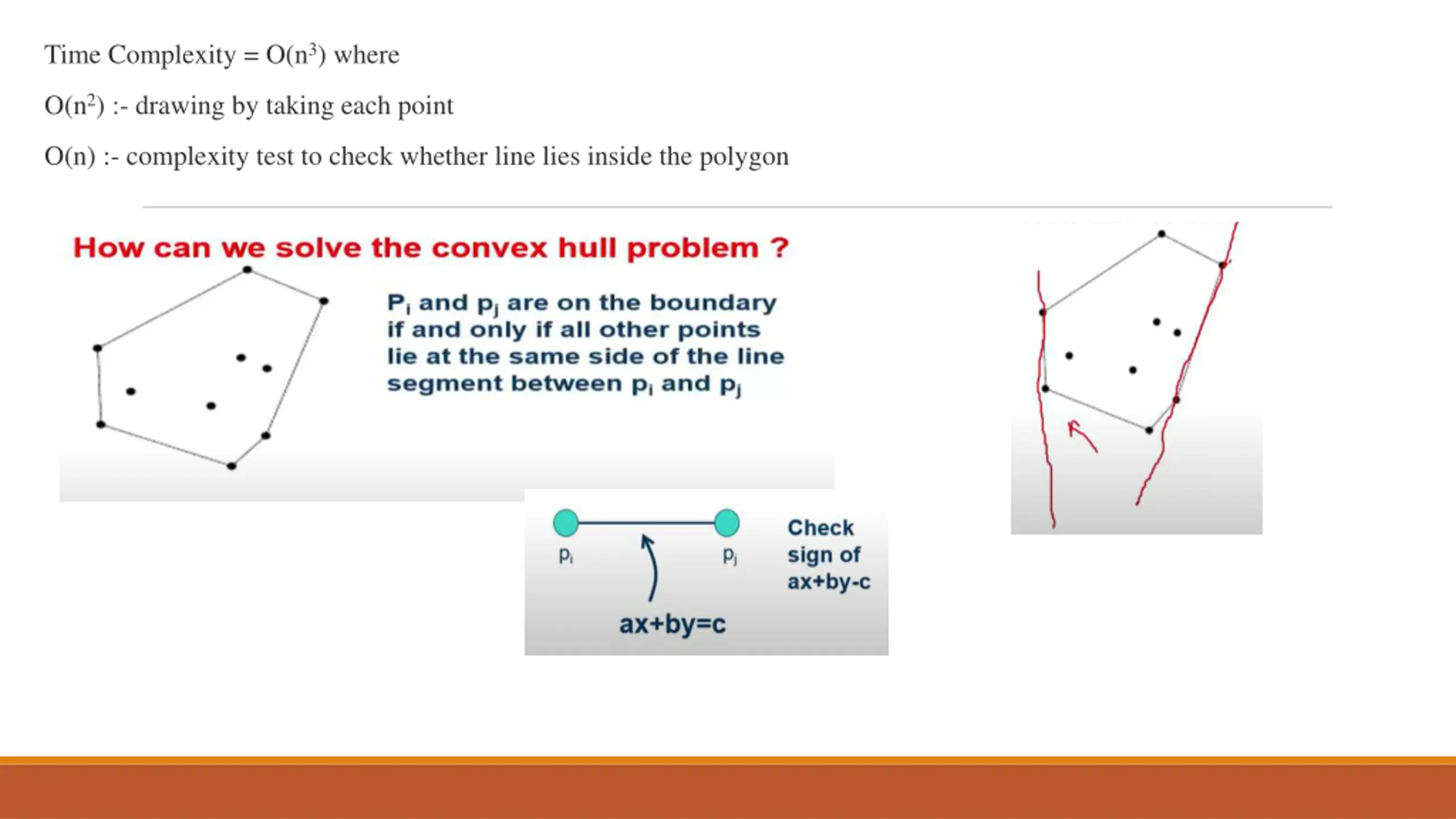 6. Time Complexity = O(n3) where O(n2) :- drawing by taking each point O(n) :- complexity test to check whether line lies inside the polygon