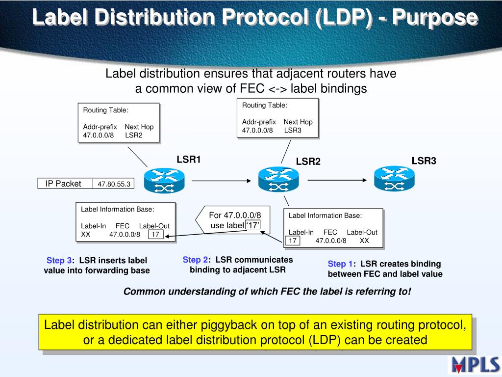 Request: 47.1 Request: 47.1 Mapping: 0.40 Mapping: 0.50 MPLS Label Distribution 1 47.1 3 3 2 1 1 2 47.3 3 47.2 2