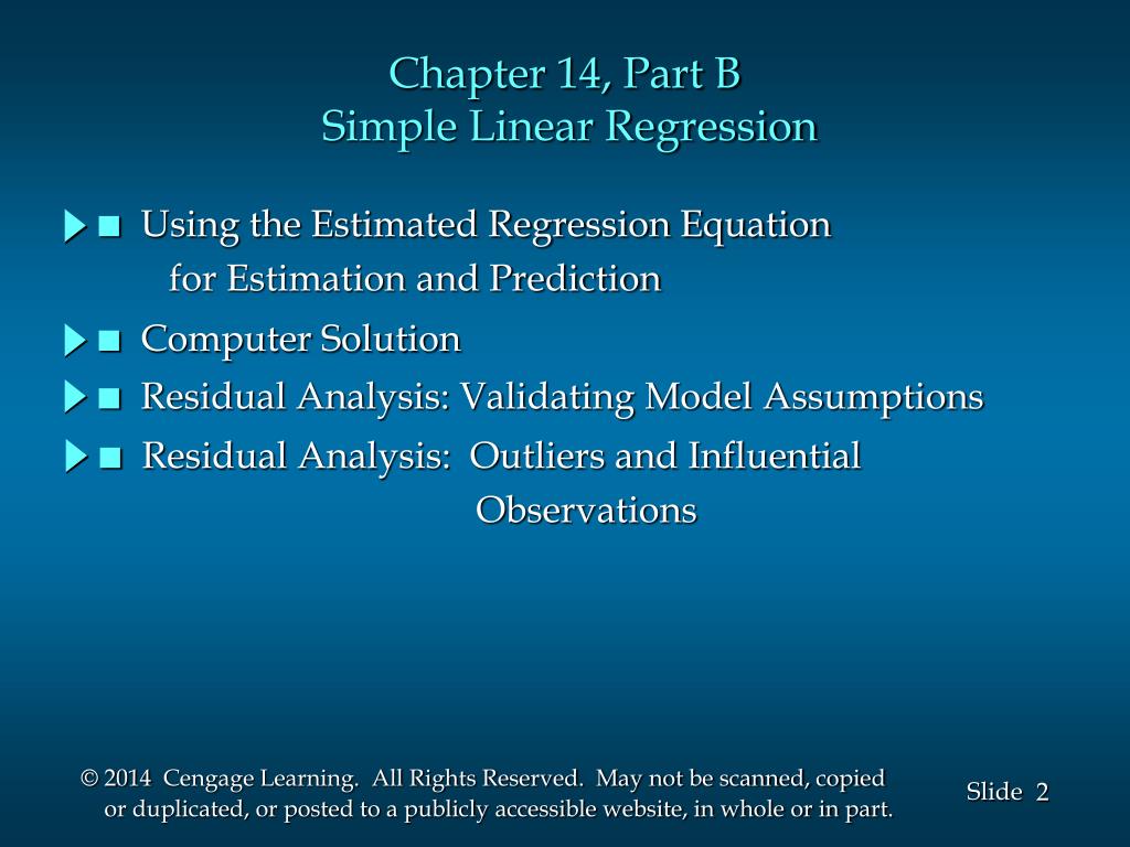 SLIDES . BY. John Loucks St . Edward’s University. Chapter 14, Part B Simple Linear Regression. Using the Estimated Regression Equation for Estimation and Prediction. Computer Solution. Residual Analysis: Validating Model Assumptions. Residual Analysis: Outliers and Influential