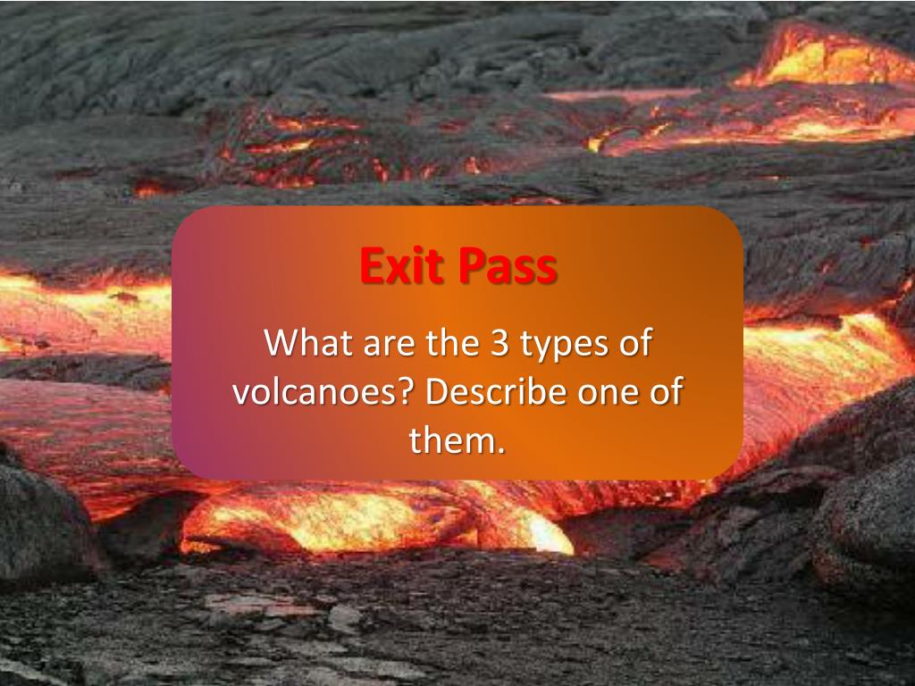 Exit Pass What are the 3 types of volcanoes? Describe one of them.