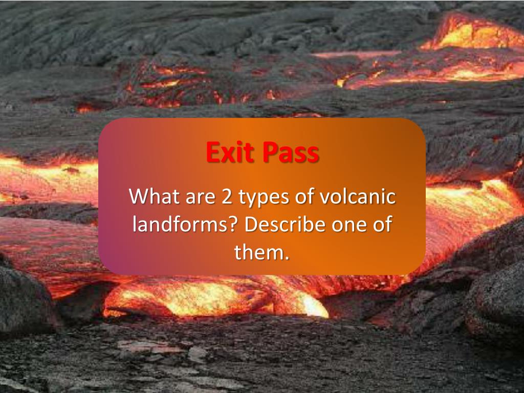 Exit Pass What are 2 types of volcanic landforms? Describe one of them.