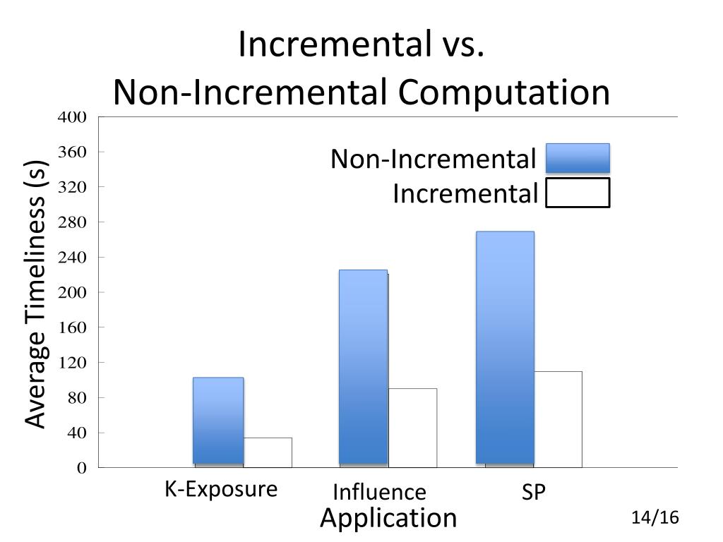 Incremental vs. Non-Incremental Computation Non-Incremental Incremental Average Timeliness (s) K-Exposure Influence SP Application