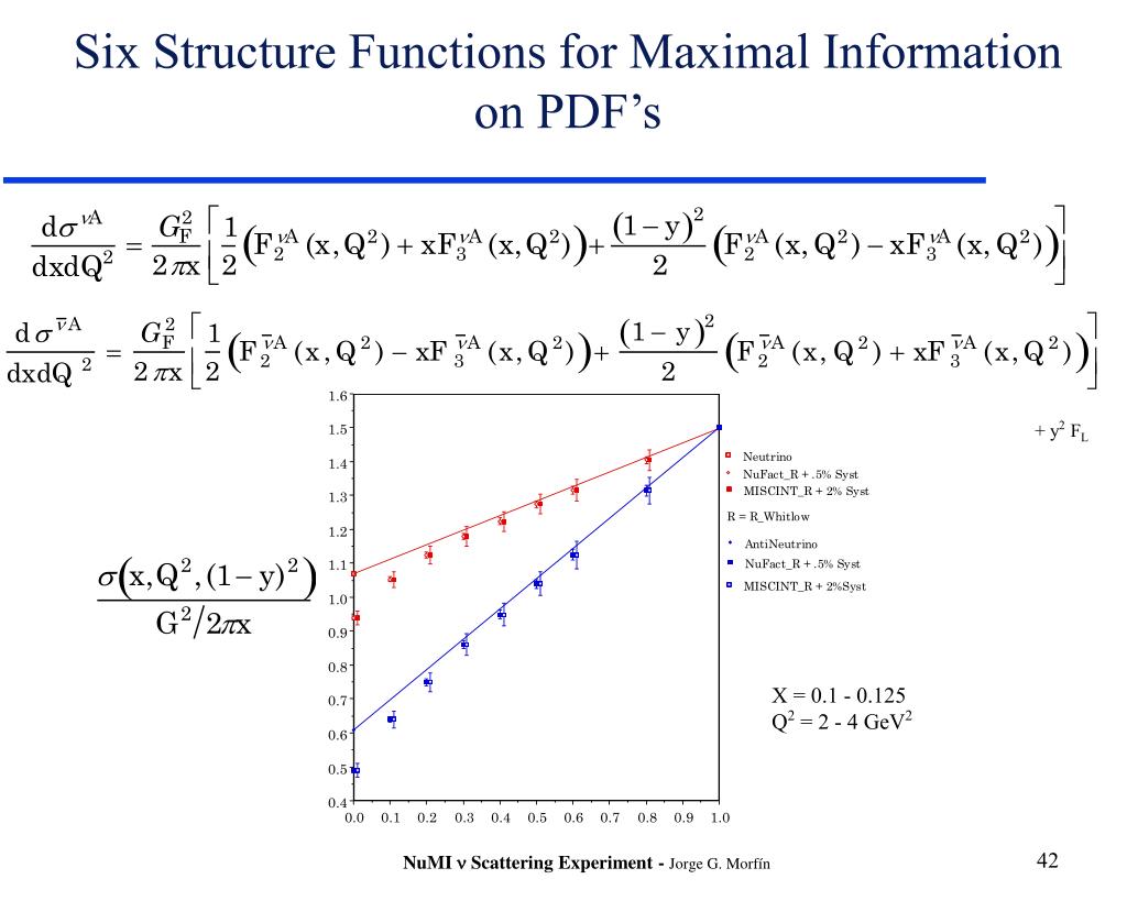 Six Structure Functions for Maximal Information on PDF’s + y2 FL X = 0.1 - 0.125 Q2 = 2 - 4 GeV2 NuMI n Scattering Experiment - Jorge G. Morfín