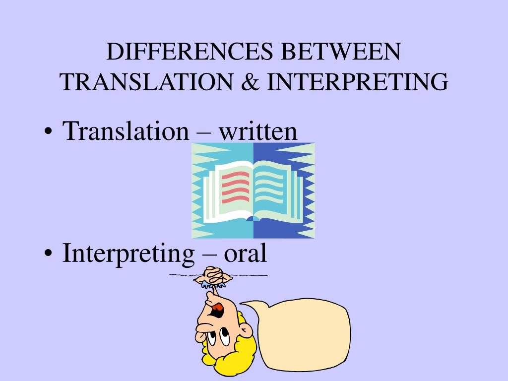 DIFFERENCES BETWEEN TRANSLATION & INTERPRETING • Translation – written • Interpreting – oral