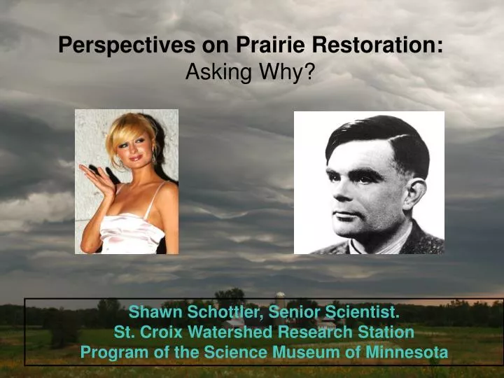 Perspectives on Prairie Restoration: Asking Why? Shawn Schottler, Senior Scientist. St. Croix Watershed Research Station Program of the Science Museum of Minnesota