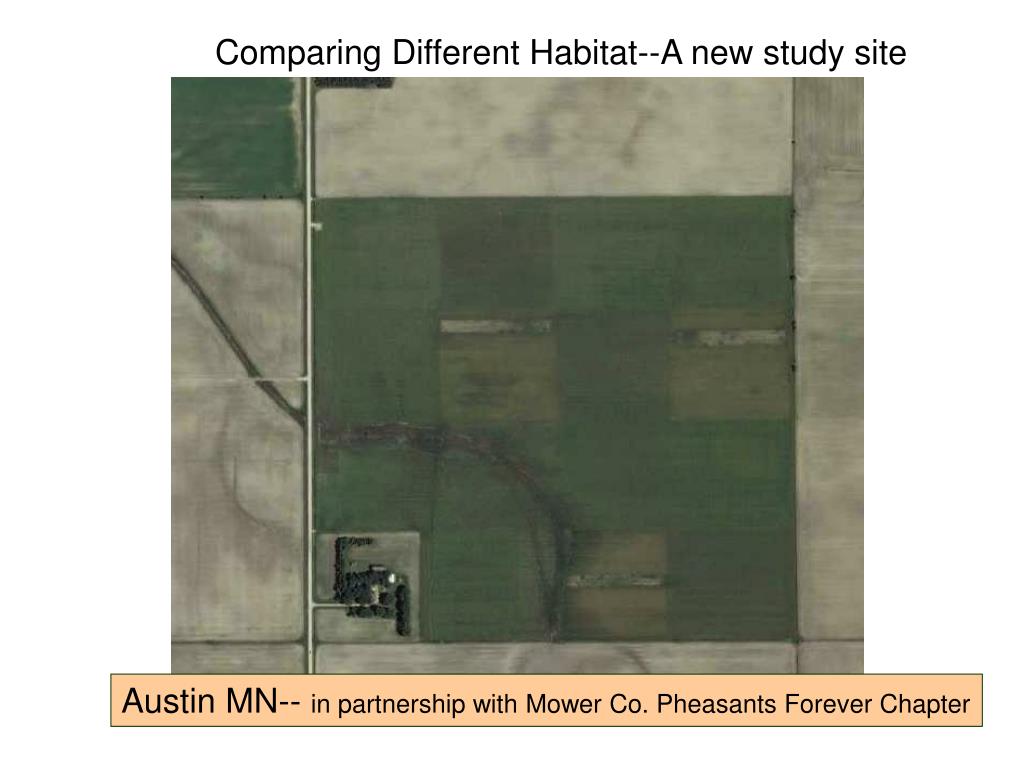 Comparing Different Habitat--A new study site Austin MN-- in partnership with Mower Co. Pheasants Forever Chapter