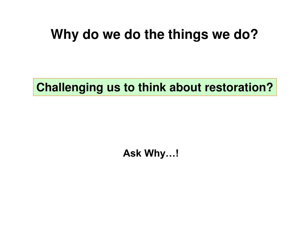 Why do we do the things we do? Challenging us to think about restoration? Ask Why…!