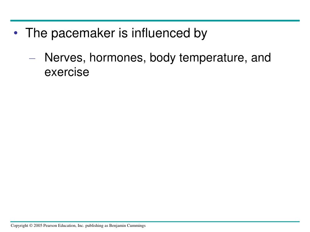 The pacemaker is influenced by • Nerves, hormones, body temperature, and exercise