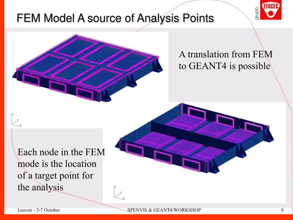 FEM Model A source of Analysis Points A translation from FEM to GEANT4 is possible Each node in the FEM mode is the location of a target point for the analysis