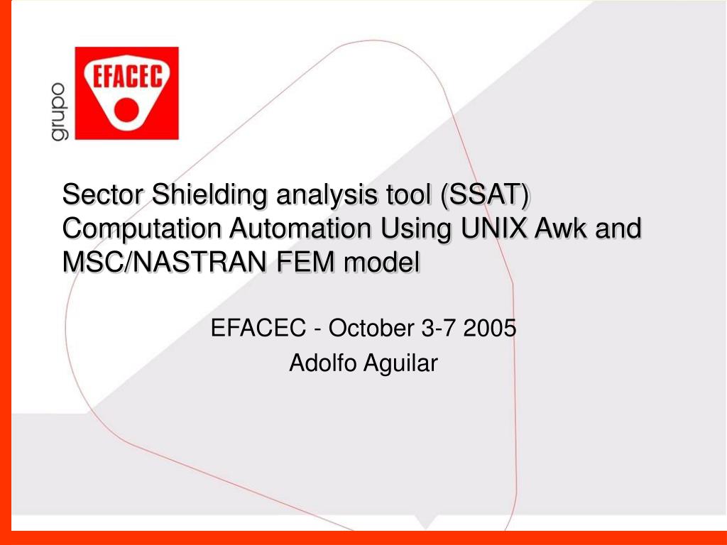 Sector Shielding analysis tool (SSAT) Computation Automation Using UNIX Awk and MSC/NASTRAN FEM model EFACEC - October 3-7 2005 Adolfo Aguilar