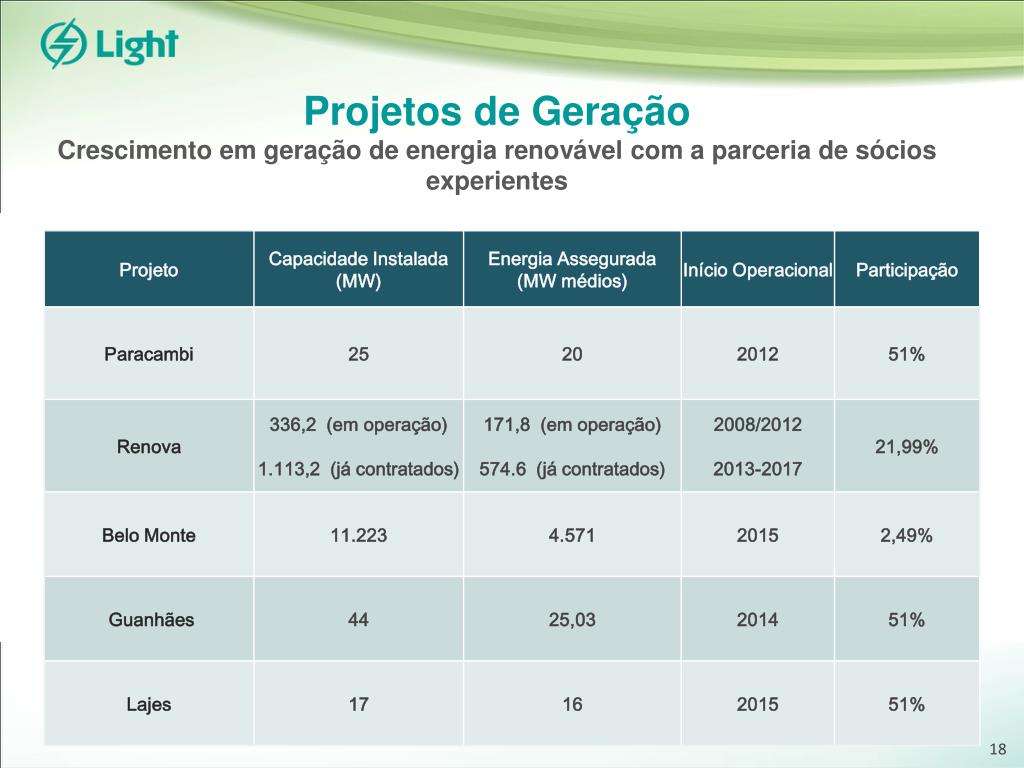 Projetos de Geração Crescimentoemgeração de energiarenovável com a parceria de sóciosexperientes 18