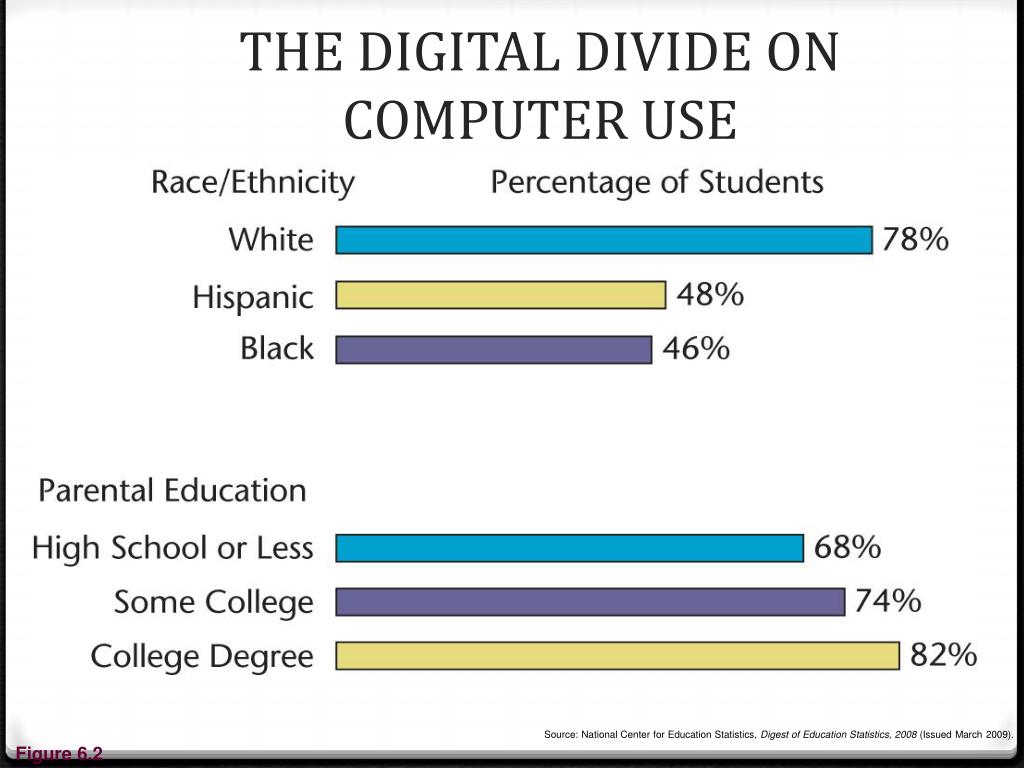 THE DIGITAL DIVIDE ON COMPUTER USE 6.7 Source: National Center for Education Statistics, Digest of Education Statistics, 2008 (Issued March 2009). Figure 6.2