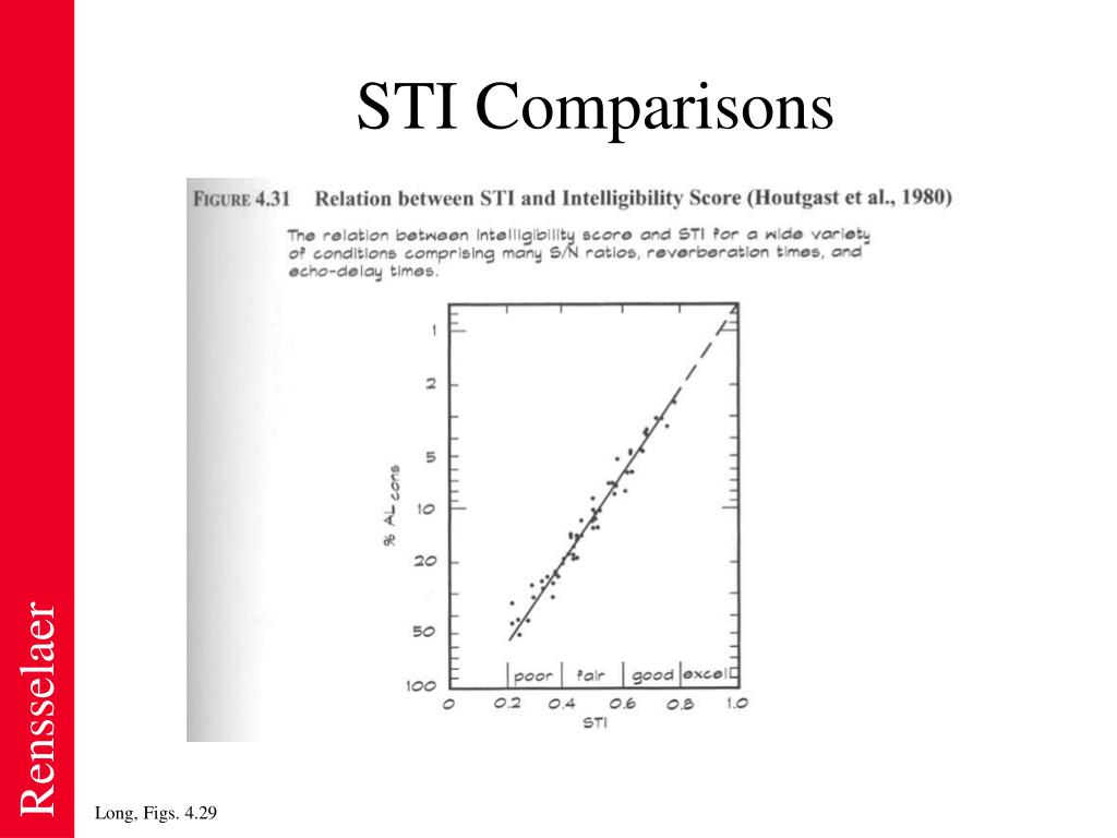MTF and STI • Now find the apparent signal-to-noise ratio for all 98 values of m • And the average LSNapp weighted by octave band • Finally Long, Fig. 4.28, p. 151