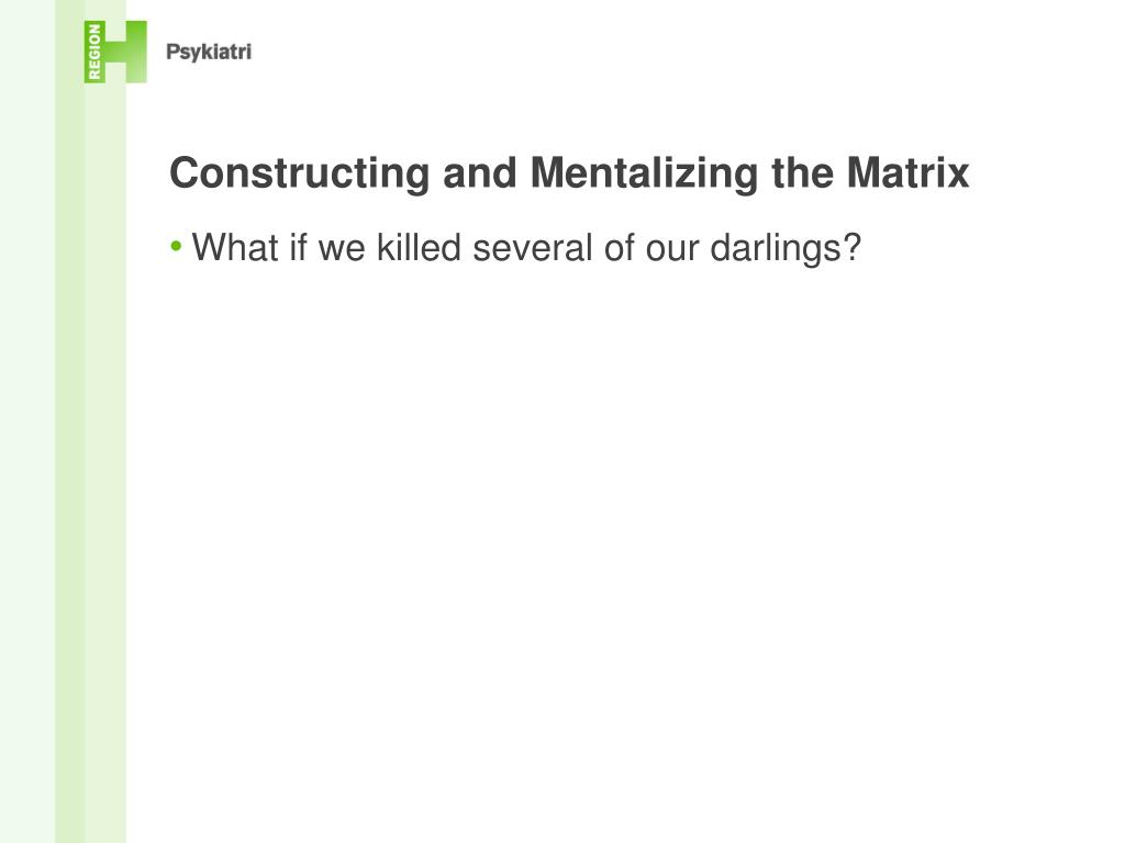 Constructing and Mentalizing the Matrix • What if we killed several of our darlings?