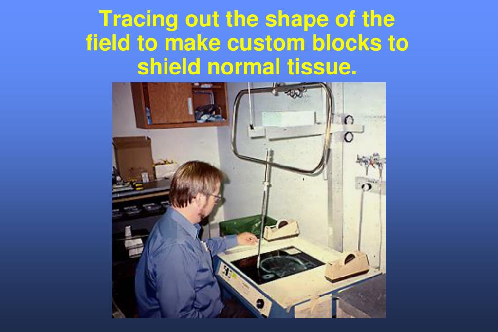 Tracing out the shape of the field to make custom blocks to shield normal tissue.
