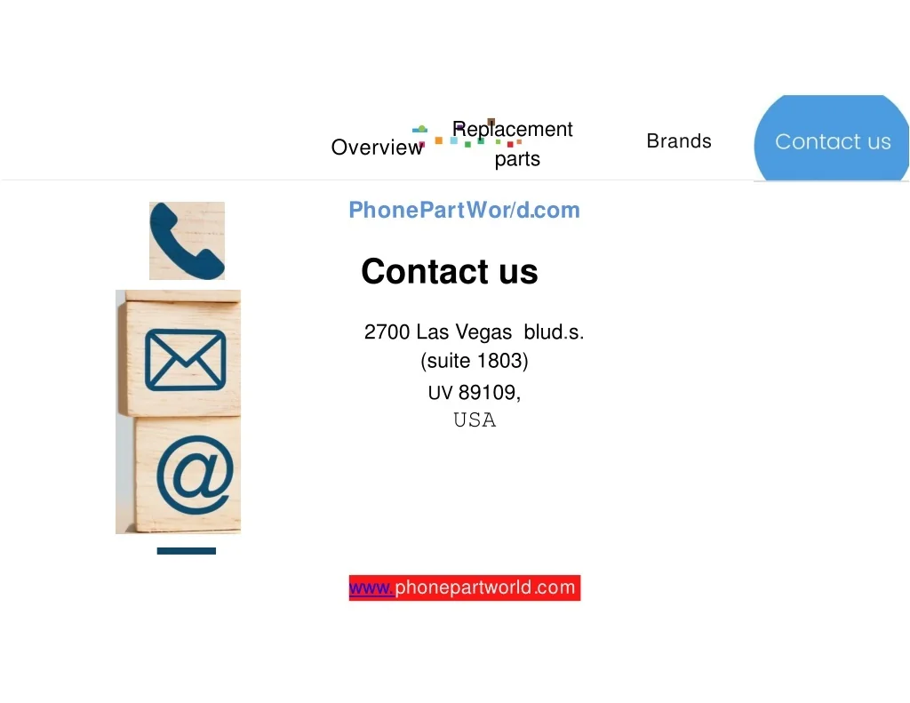 -·...·..·...PhonePartWor/d.com Replacement parts Brands Overview Contact us 2700 Las Vegas blud.s. (suite 1803) UV 89109, USA www.phonepartworld.com