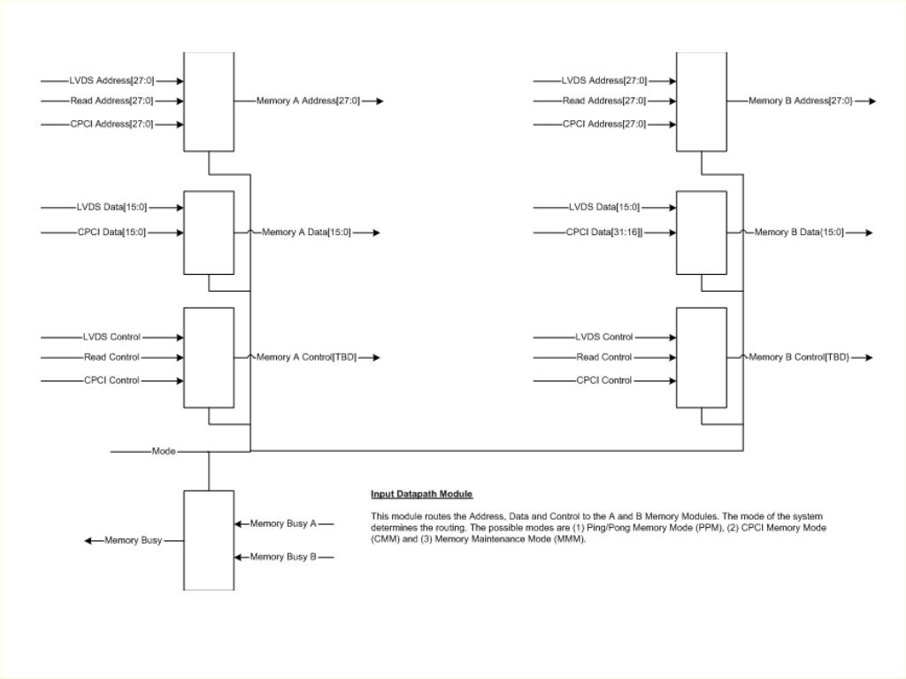 Ping/Pong Mode SM I/F 16MHz, 16-bit LVDS Memory A 256M x 16 Error corrected SDRAM Memory B 256M x 16 Error corrected SDRAM Bus master – DMA transfers Switch memories under IC control CPCI I/F 33MHz, 32-bit 13
