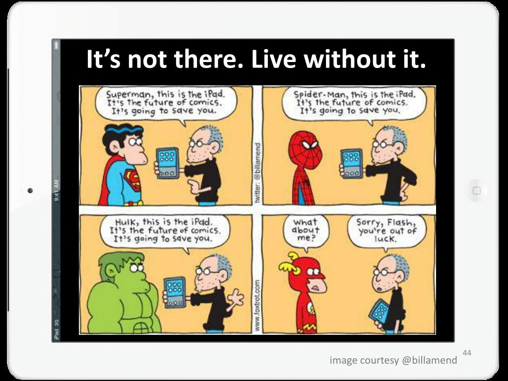 “iPad is a Consumer Device.” • When you get frustrated with how the iPads work in a shared environment, remember that you are shoe-horning a device that’s designed for a single user into a shared classroom setup. • There will be sharing issues, and until Apple addresses them, you will have to work around the issues.