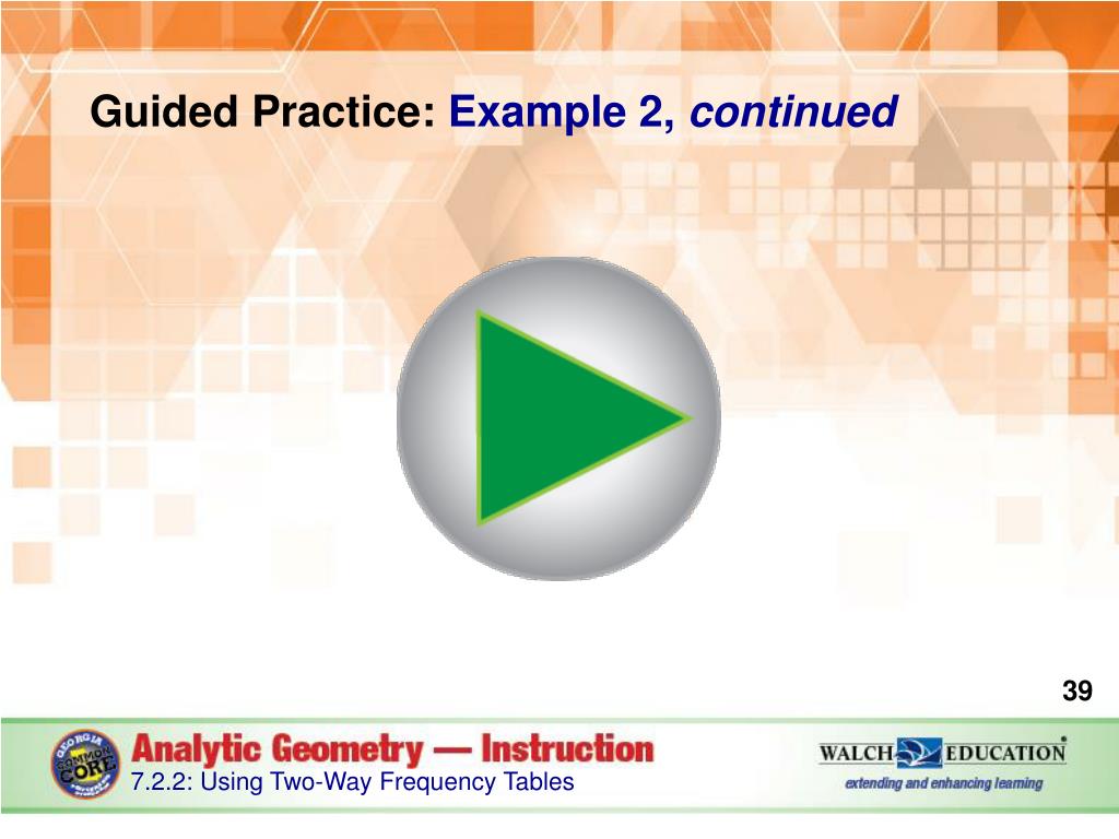 Guided Practice: Example 2, continued 7.2.2: Using Two-Way Frequency Tables