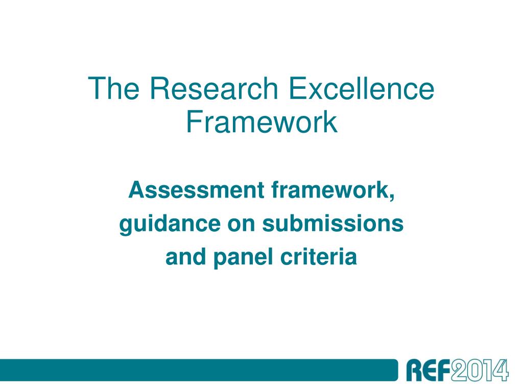 The Research Excellence FrameworkAssessment framework, guidance on submissions and panel criteria