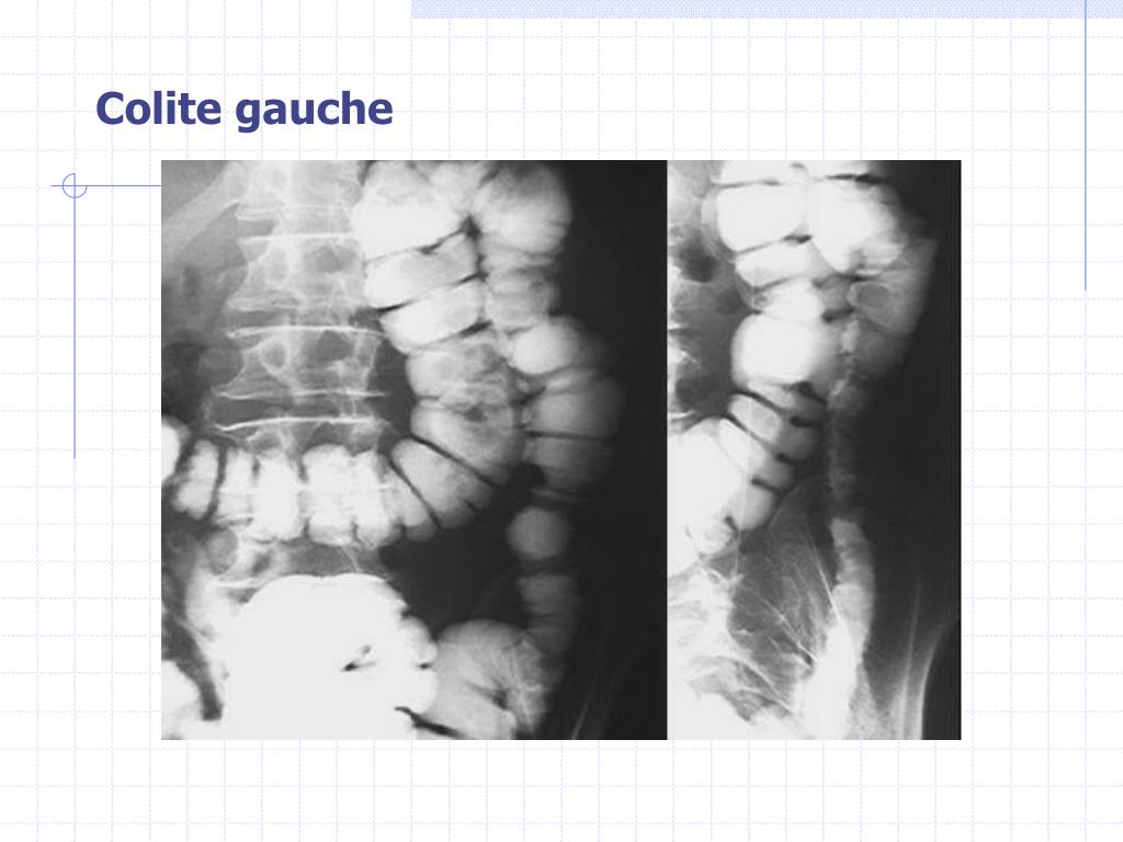 Radiologie • ASP: colectasie, pneumopéritoine • Transit du grêle: sténose(s), fistule(s) • IRM : trajets fistuleux (lésions ano-périnéales) • Scanner abdominal :abcès, épaisseur de l’atteinte transmurale • Le lavement baryté • L’entéroscanner