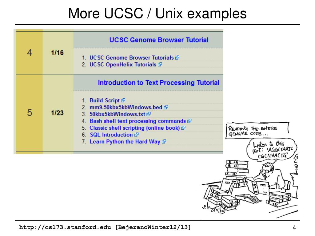 More UCSC / Unix examples http://cs173.stanford.edu [BejeranoWinter12/13]