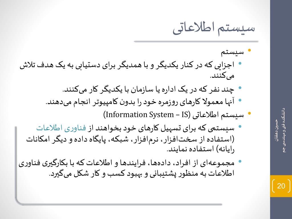 سیستم اطلاعاتی حسین دهقان دانشکده فنی و مهندسی جم