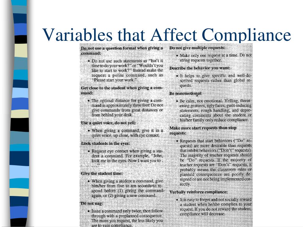 Characteristics of Oppositional Defiant Disorder • Non-compliant • Argumentative • Weighs costs of behavior Instructional Strategies: -Precision Requests -do not negotiate -layout consequences if chooses to behave vsmisbehave -findcarrot -Behavior Intervention Plans