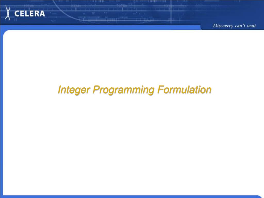 Integer Programming Formulation The use of Integer Linear Programming * Exact solution * Heuristic + guarantee (LP upper bound)