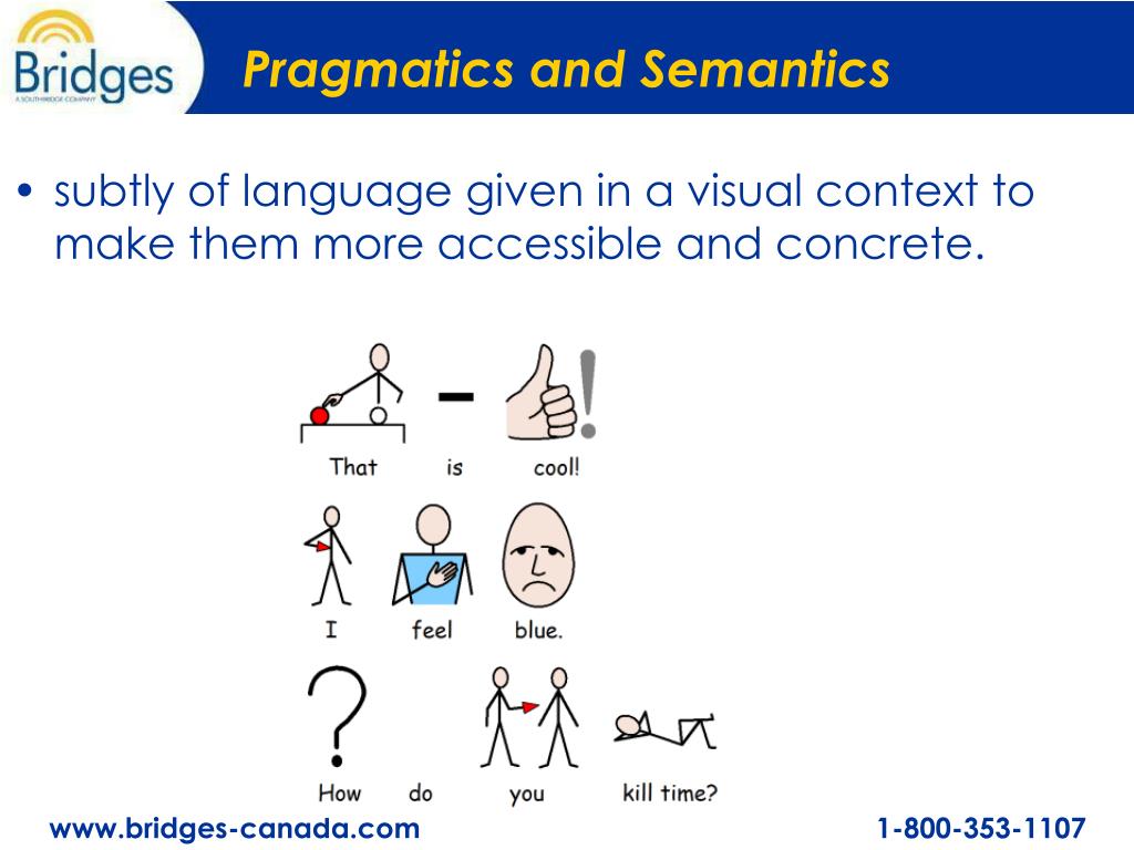 Pragmatics and Semantics • subtly of language given in a visual context to make them more accessible and concrete.