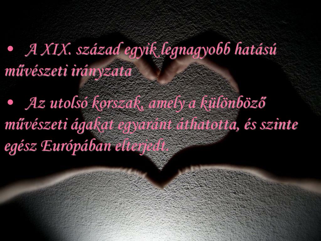 A XIX. század egyik legnagyobb hatású művészeti irányzata • Az utolsó korszak, amely a különböző művészeti ágakat egyaránt áthatotta, és szinte egész Európában elterjedt.