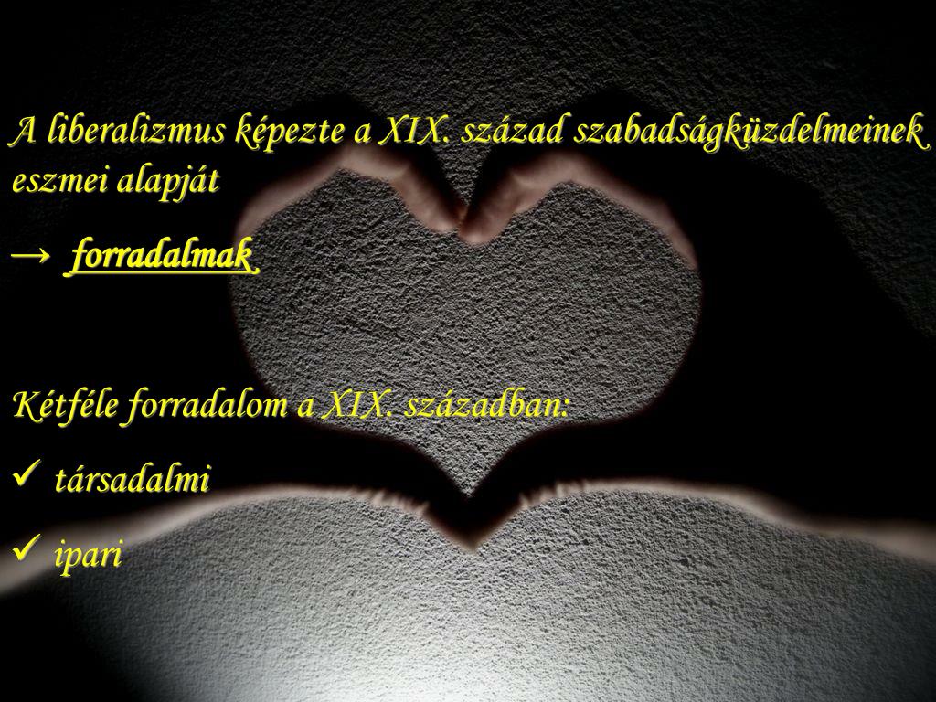 A liberalizmus képezte a XIX. század szabadságküzdelmeinek eszmei alapját • → forradalmak • Kétféle forradalom a XIX. században: • társadalmi • ipari