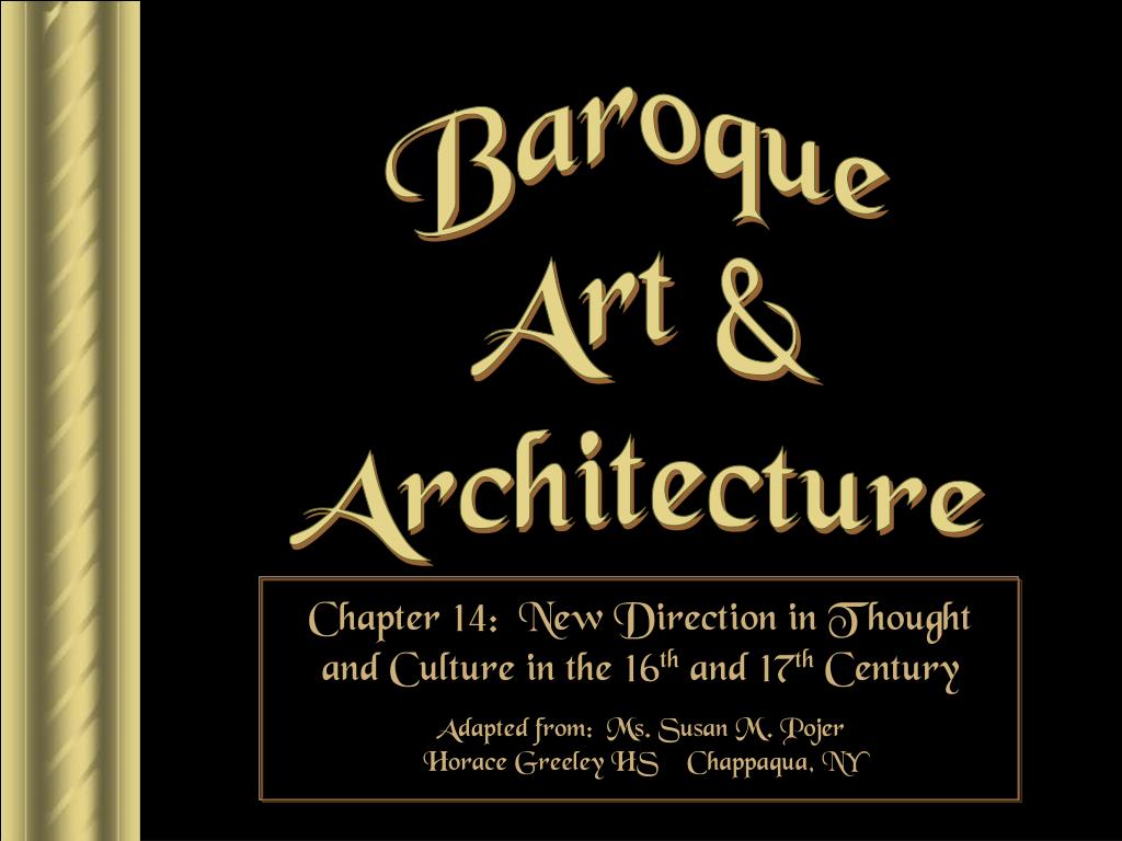 Baroque Art & Architecture Chapter 14: New Direction in Thought and Culture in the 16th and 17th Century Adapted from: Ms. Susan M. PojerHorace Greeley HS Chappaqua, NY