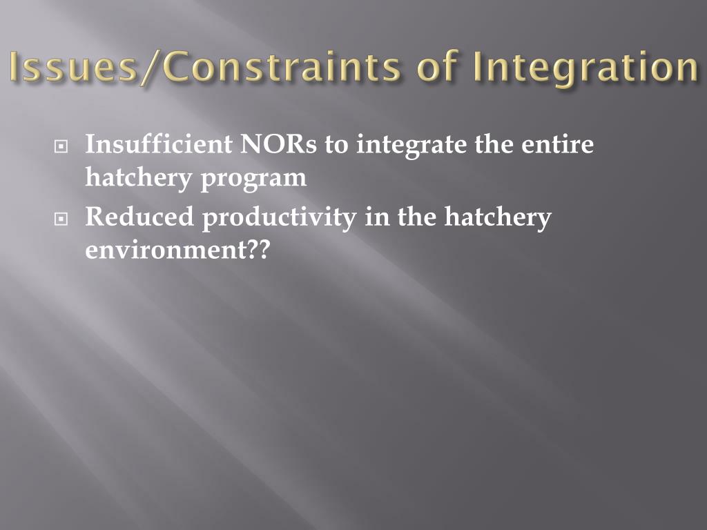 Issues/Constraints of Integration • Insufficient NORs to integrate the entire hatchery program • Reduced productivity in the hatchery environment??