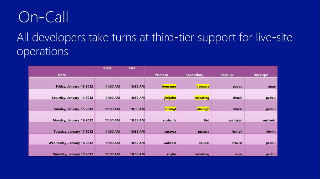 Tying it all Together: Leap Day • Outage on February 29 caused by this line of code:validToYear = currentDate.Year + 1; • The problem and its resolution highlights: • Network Operations and monitoring • DevOps “on call” model • Cluster fault isolation • Lessons we learned