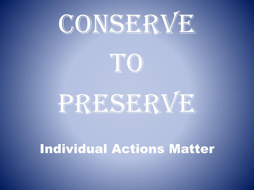 CONSERVE TO PRESERVE Individual Actions Matter