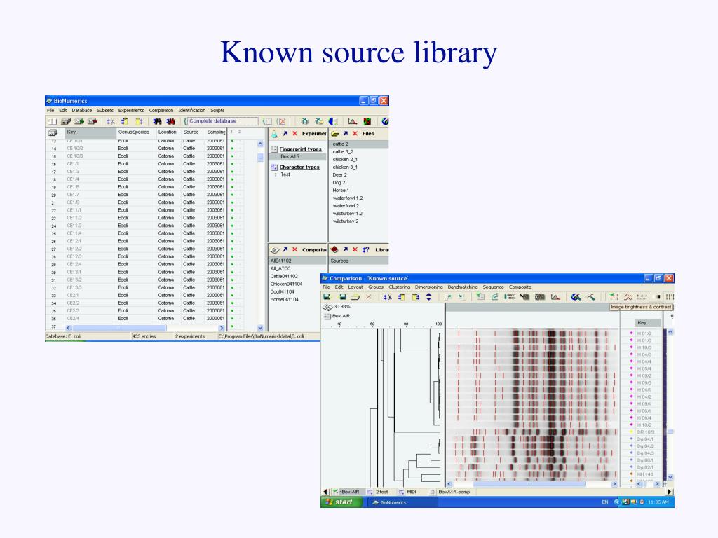 MANOVA plot of E. coli rep-PCR DNA fingerprints from different source groups: eight vs. three source groups Human Domestic Human Cattle Chicken Dog Horse Deer Waterfowl Wild turkey Wildlife