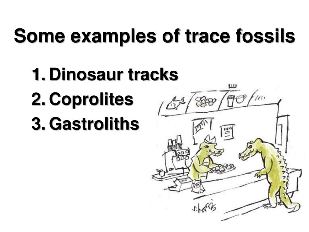 Some examples of trace fossils Dinosaur tracks Coprolites Gastroliths