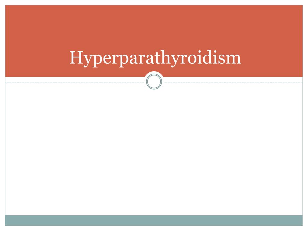 Hyperparathyroidism Significant skeletal changes related to unabated osteoclast activity Entire skeleton is affected, some sites may be more severely affected PTH is directly responsible for bone changes in primary but additional influences contribute in secondary Inadequate 1,25(OH)2 vitD synthesis in chronic renal failure