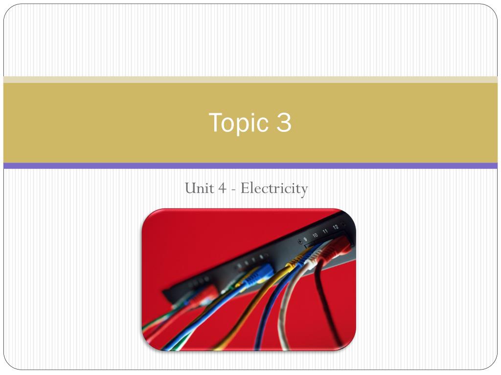 Topic 3. Unit 4 - Electricity. Topic 3: Resisting the Movement of Charge. Resistance. Resistance A property of a resistor or load that slows charges. It converts electrical energy into other forms of energy. Good conductors offer little resistance like metal wires.