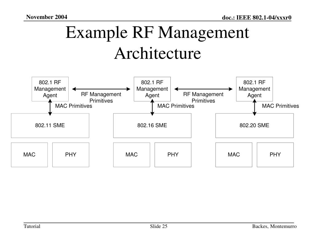 MAC enhancements for Media Independent RF Management of Wireless 802 Networks. Floyd Backes, Propagate Networks Michael Montemurro, Chantry Networks. Overview. What is RF management Problem Definition Changing personalities SDRs and Cognitive Radio An example Proposed Solution