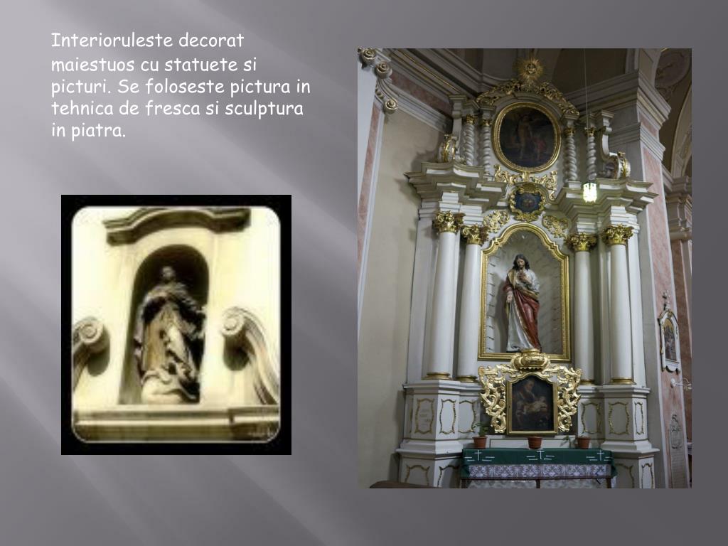 Interioruleste decorat maiestuos cu statuete si picturi. Se foloseste pictura in tehnica de fresca si sculptura in piatra.