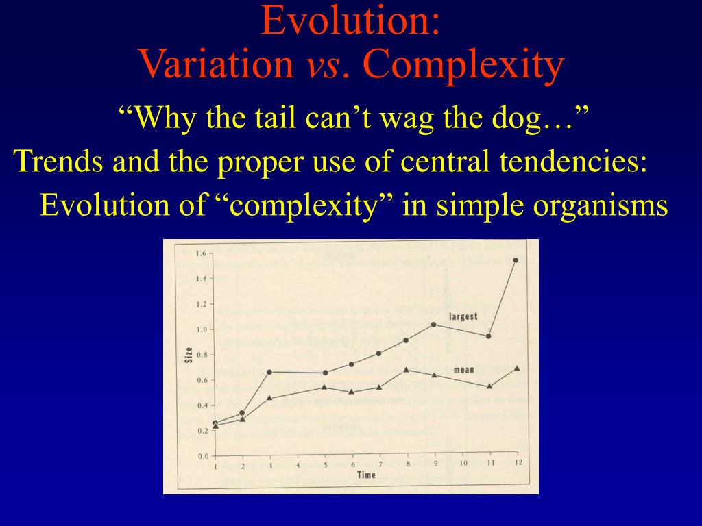 Evolution:Variation vs. Complexity “Why the tail can’t wag the dog…” Trends and the proper use of central tendencies: Evolution of “complexity” in simple organisms