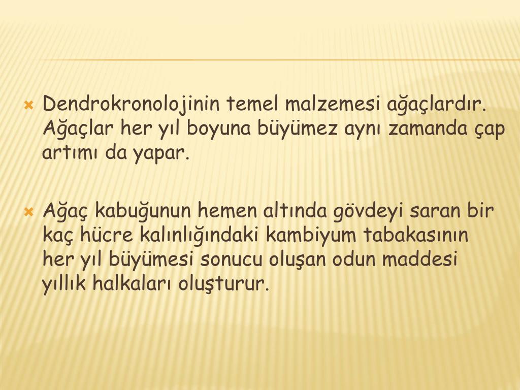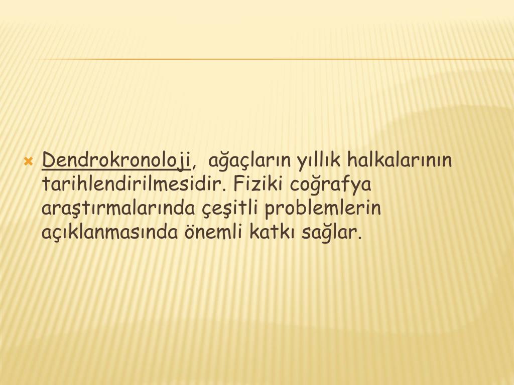 Adil Özçağlar Enes Uygurhan. DENDROKRONOLOJİ. Dendrokronoloji , ağaçların yıllık halkalarının tarihlendirilmesidir . Fiziki coğrafya araştırmalarında çeşitli problemlerin açıklanmasında önemli katkı sağlar.