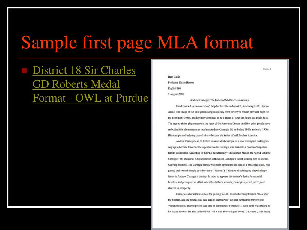 Sample first page MLA format • District 18 Sir Charles GD Roberts Medal Format - OWL at Purdue