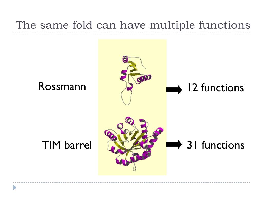 The same fold can have multiple functions Rossmann 12 functions TIM barrel 31 functions