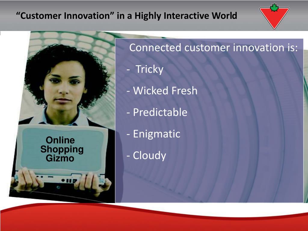 “Customer Innovation” in a Highly Interactive World Connected customer innovation is: - Tricky - Wicked Fresh - Predictable - Enigmatic - Cloudy Online Shopping Gizmo